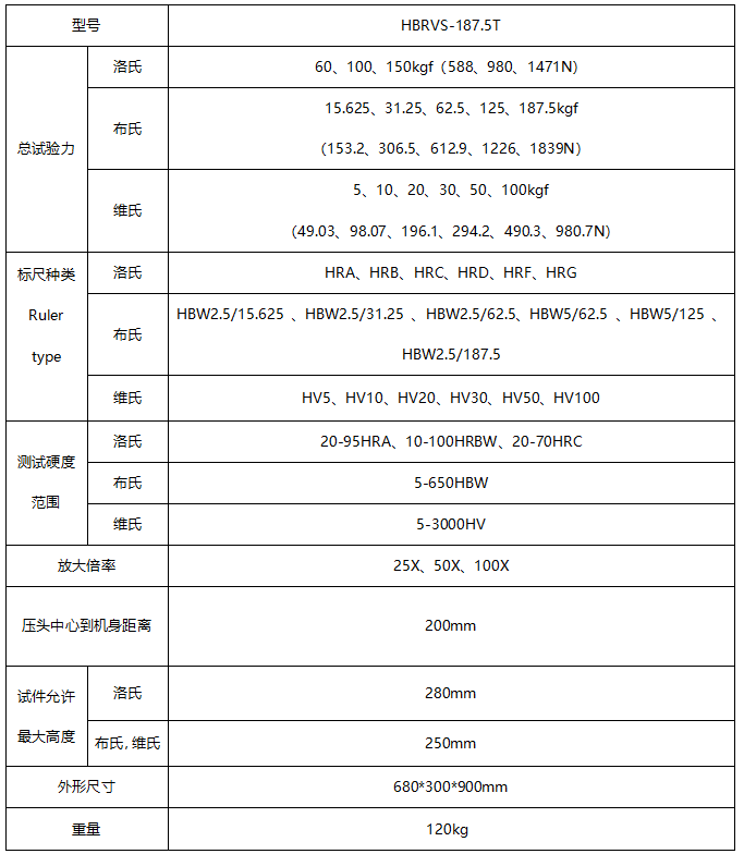 HBRVS-187.5T數顯布洛維硬度計外形新穎、功能齊全、操作方便、顯示清晰直觀、性能穩定,是集光,機,電于一體的高新技術產品,可進行布氏、洛氏、維氏三種硬度測試,具備多級試驗力,能滿足多種硬度測試需求。具有較高的測試精度,操作簡單、靈敏度高、使用方便,示值穩定等特點。配備內置打印機,并可以選配RS232數據線通過超級終端方式與電腦連接,導出測量報表。