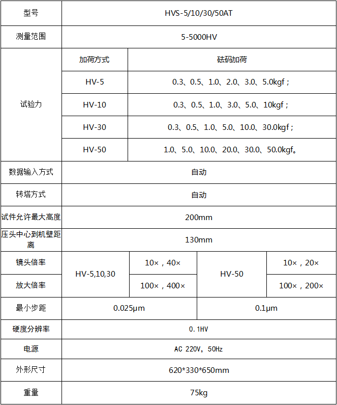 HVS-5 10 30 50AT觸摸屏數顯自動轉塔維氏硬度計,采用8寸觸摸屏和高速ARM處理器,顯示直觀,人機互動友好,操作簡便;運算速度快,數據庫巨量存儲,數據自動修正,并提供數據折線報表。